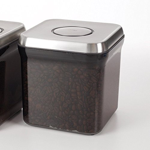 The OXO Good Grips Coffee and Tea POP Containers combine the airtight, stackable and space-efficient qualities of our classic POP Containers with UV-blocking technology to protect contents from moisture and light. The Containers have a unique push-button mechanism that creates an airtight seal with just one touch. The button also serves as a handle to lift off the lid. The Containers are designed for modular stacking so that you can efficiently organize your countertop and pantry. In addition, with their square and rectangular shapes, the POP Containers make the most of any storage space, while their corners allow for easy pouring. These tinted POP Containers are available in 3 different sizes to fit any coffee beans, ground coffee, loose leaf tea, or any other UV-sensitive foods fresh. The lid comes apart for thorough cleaning. All POP Containers are BPA-free.