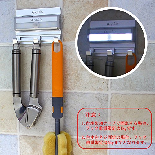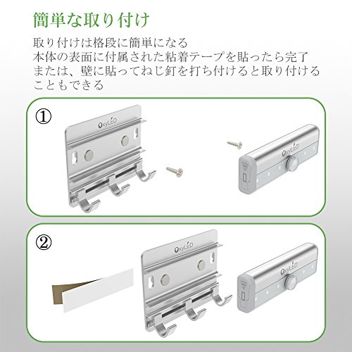 - 【二つの取り付けた方】:ネジで固定&3mテープで貼り、どんな場所にも取り付けられます。マグネット付き、金属の表面に取り付けられます、冷蔵庫の補充ライトとしても便利です。フックの耐荷重:約5kg;3mテープを使用する場合の耐荷重:約1kg。