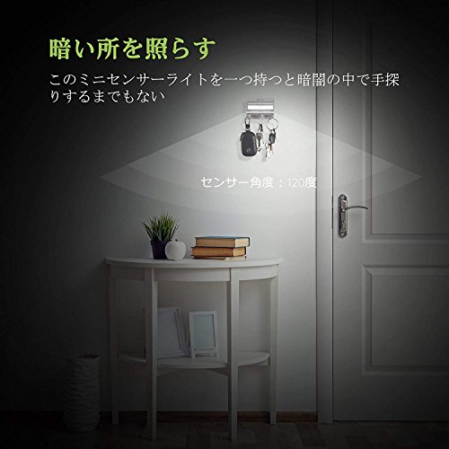 - 【省エネ&高感度】:人感センサーと明暗センサーを搭載により、暗い場所に120度以内で最大3メートル以内の動体を検知しライトを発光させます。省エネで約15~17秒後に、動体が検知されない場合は自動的に消灯します。