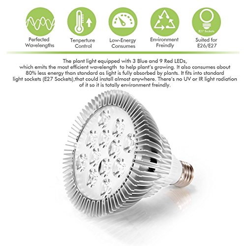 - PERFECTED WAVELENGTHS FOR PEAK PERFORMANCE: 12 LED(3 blue & 9 red) emit the most efficient light wavelength to produce peak photosynthesis performance and cultivate plants and herbs.