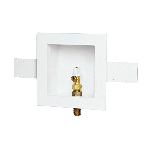 Available in several box and valve configurations.. Box Dimensions: 6""W x 6""H x 3-3/8""D.. Faceplate Dimensions: 8-1/4""W x 8-1/4""H.. 2 support brackets. High impact polystyrene. Provides quick, safe water supply and shutoff for refrigerator ice maker and water dispenser. Available in several box and valve configurations. Dimensions: Box, 6-Inch W x 6-Inch H x 3 3/8-Inch D. "OATEY" ICE MAKER OUTLET BOX * Low lead * Polystyrene * Provides quick, safe water supply and shut-off for refrigerator ice maker and water dispenser * Box is made of high impact polystyrene * 2 support brackets * Snap-on faceplate frame accommodates up to 1" drywall * 1/4 turn brass ball valve, 1/2" astm f1807 pex * Dimensions: box - 6" w x 6" h x 3-3/8" d, faceplate - 8-1/4" w x 8-1/4" h * Valve complies with requirements of nsf 61, section 9.