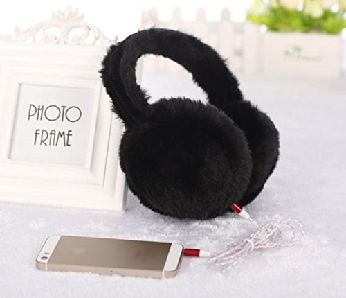 Oche 音楽が聴ける イヤーマフ ふわふわ ヘッドホン ヘッドフォン 耳あて (ブラック)