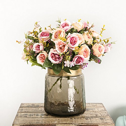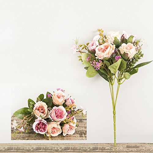 Ochine人工フェイク花シルクマカロントーンローズinクラブCAFAな母の日ギフトPresent装飾レストランホーム、1 pc ピンク SUN-NYC0053QP