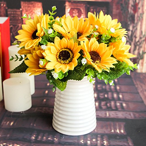 Ochine Branches 7ヘッド人工花フェイク花ひまわりブーケのホームガーデンオフィスダイニングテーブルウェディングDIYインテリア 1pc SUN-NYC0055A