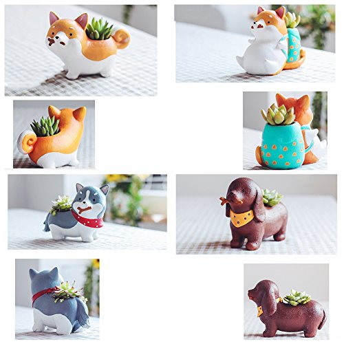 Ochine 可愛い 癒し犬ちゃん 植木鉢 プランター デザイン小物 フラワーポット 雑貨 インテリア アウトドア DIY 飾り おしゃれ 多肉植物 寄せ植え 鉢 収納スタンドにも 両用 L13.5×W7.5×H11cm