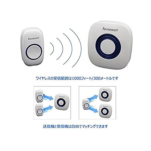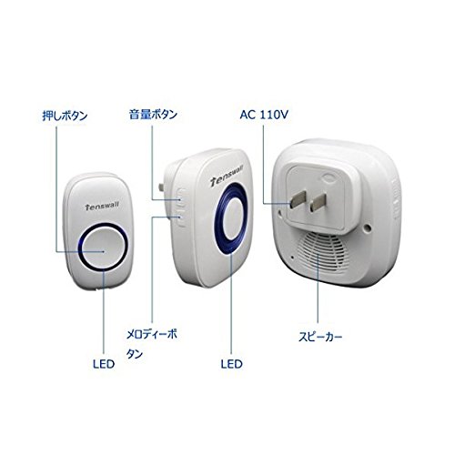 Tenswall® 【改良版】ワイヤレス ドアチャイム ドアベル 、呼出音楽52メロディー選択可、呼び鈴玄関 ,チャイムセンサー, 呼び出しチャイムセット(受信機1個 送信機1個) (白) 「並行輸入品」