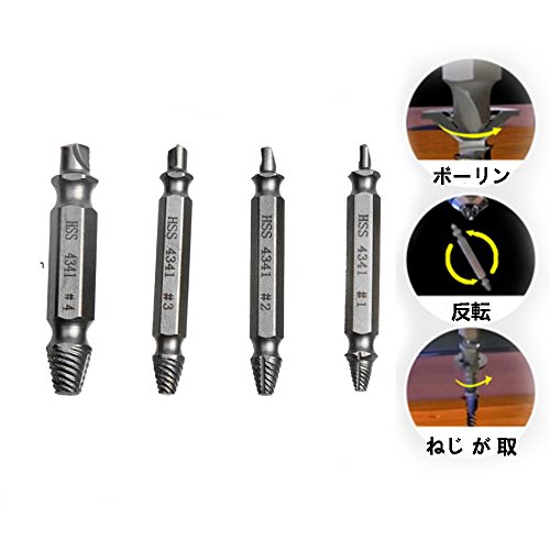 4PC損傷スクリューエクストラクタリムーバードリルビット1/4 "六角ケースダブルエンド