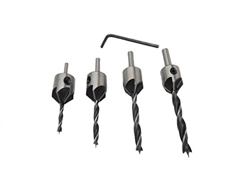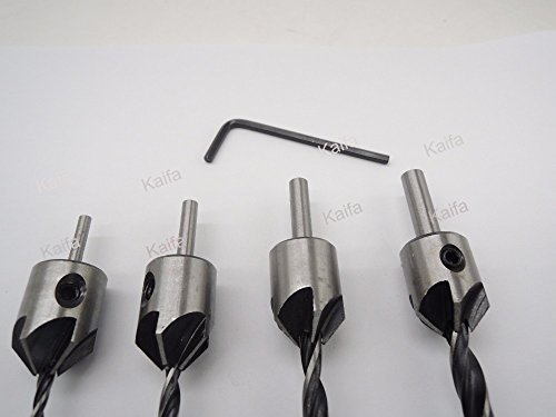 4本HSS 5フルートカウンターシンクドリルビットセットスクリュー木工面取りツール3-6ミリメートル