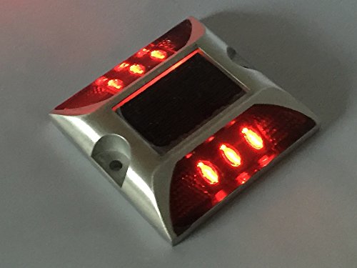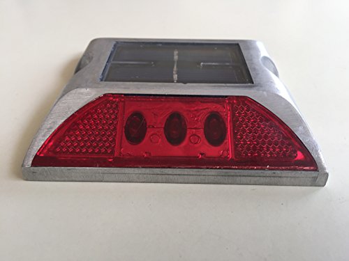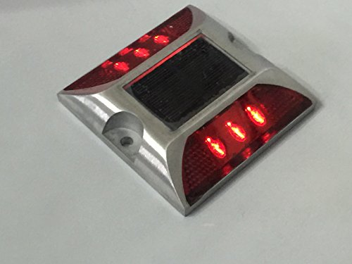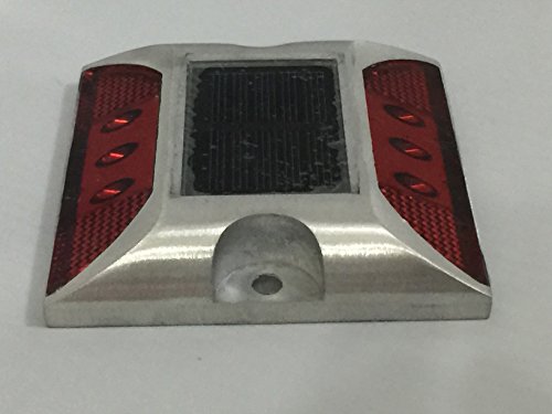 ソーラー 充電 道路 鋲 LED ライト 点滅 耐重量 20t 夜間 自動点滅 安全 駐車場 側溝 縁石 両面テープ付き (赤 レッド)