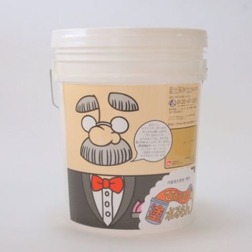 コストパフォーマンスの高い個性的な仕上げ材。自分で壁を塗るハイセンスDIYに便利です。 「ひとりで塗れるもん(R)」は、DIYに適した室内用塗り壁材で、壁紙の上からそのまま自分で壁を塗ることができます。左官屋さんのようにコテを使って、材料を1mm~2mmの厚みで塗ればOK。 「ひとりで塗れるもん」はペースト状に練りこまれた状態でペール缶に入っていますので、蓋を開けてそのまま塗り始めることができます。 「ひとりで塗れるもん」は従来の塗り壁材と比較して、驚くほど軽く引き伸ばすことができますので、塗装感覚で女性やお子様でも塗ることが可能です。ペール缶を開ければすぐ塗り始められ、約半日で20㎡(およそ6帖間の壁面)を塗ることができます。 「ひとりで塗れるもん」は炭酸カルシウムを主成分とした自然素材系の材料です。従来の塗り壁材にあるような調湿機能を持ち、また、独自製法で塗り壁材特有の服に付く粉っぽさを取り除いた材料ですので、ウォークイン・クローゼットなどにもお使いいただけます。強度を保つために天然ミネラルファイバーやEVA樹脂が若干量含まれますが、EVA樹脂はベビー用玩具などにも使われている安全性の高い樹脂ですので、安心してお使いいただけます。 「ひとりで塗れるもん」は無機質で弱アルカリ性のため、カビにくくホコリもつきにくい特徴があります。