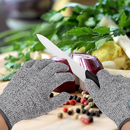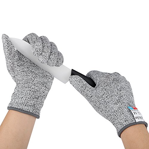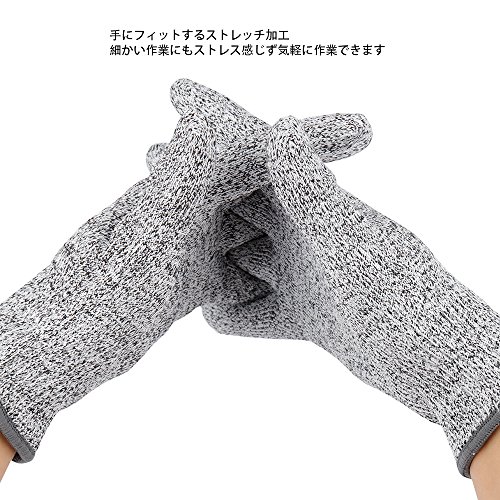 - 【耐切創性】ヨーロッパCE規格で耐切創性能が最高のレベル5を取得(EN388)、レザーより4倍強い耐切創手袋。刃物・金属・ガラスなど鋭利な器物から手を守ります。