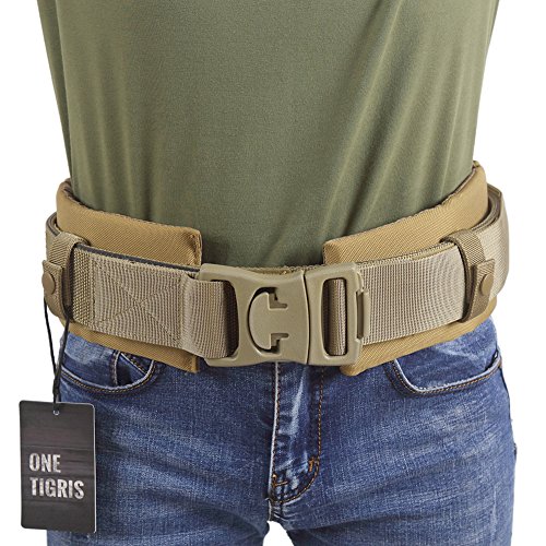 OneTigris タクティカルベルト サバゲー装備 多機能 多用途 パッド付きベルト サバイバル 作業用 ウエスト保護 (タン)