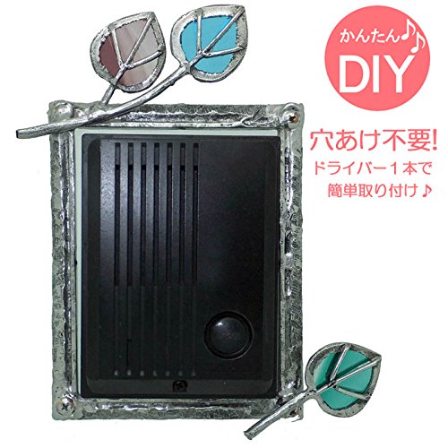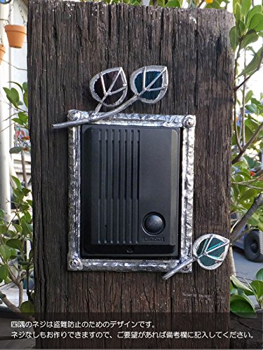 インターホンカバー ハンドメイド 葉っぱ 装飾 エクステリア 手作り ガラス 簡単取り付け /錫古び