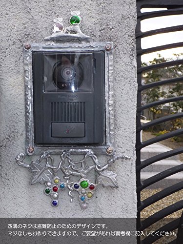 インターホンカバー ハンドメイド ふくろうと葡萄 装飾 エクステリア 手作り ガラス 簡単取り付け /錫