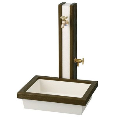 立水栓 水栓柱はガーデニングと洗車にと大活躍アイテムです。木目のアクセントが落ち着いた印象を与えます。 ナチュラル感溢れる木目は住まいを上品で柔らかな風合いで装ってくれます。 立水栓+パン(水鉢)がセットになっています。 ・サイズ(mm)立水栓:幅110×奥行110×高さ700(全高:870) パン(水鉢):幅500×奥行400×高さ130 ・重量:立水栓(kg):11 パン(水鉢):11 ・カラー:ダークブラウン ・材質:GRC(ガラス繊維強化セメント) ・仕上げ:アクリルウレタン樹脂塗装 ※本体に蛇口は付属しておりません。別途お買い求めください。 ※パン(水鉢)は水を溜める仕様にはなっていません。ガーデンパントレビウッドには、樹脂製の排水口と目皿が同梱されています。