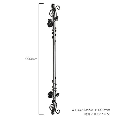 アイアン 取っ手 ドアハンドル ロング HRT-0003R 面付けタイプ ハンドメイド ブラック