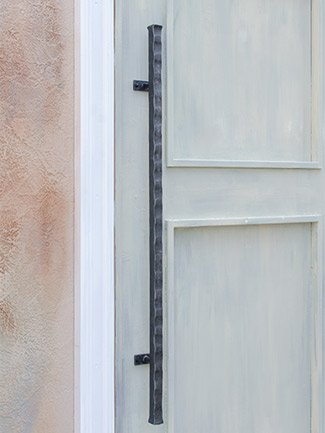 ロングタイプのアイアン製ドアハンドルです。質感のある重厚なフォルムが、贅沢な趣を感じさせます。シンプルにビスで取り付けられる面付けタイプです。