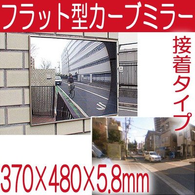 駐車場 車庫 カーブミラー フラット型凸面機能ミラー 370×480(接着タイプ) 室内・屋外両用