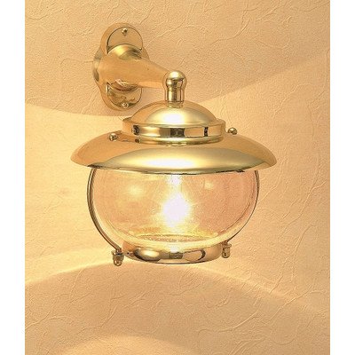 玄関 照明 玄関灯 門柱灯 防雨型 フィッシャーマンズスタイルのエクステリアライト。コンパクトなサイズのカサとガラスの保護ゴーグルが重厚さと洗練された美しさが魅力。 本体を真鍮のダイカストという贅沢な方法で鋳造し、彫りの深い表情をしています。 クリアー塗装仕上げで、室内使用においては、ほとんど仕上げの変化はなくお使い頂けます。 また屋外では、長年のご使用で表面の塗装が剥がれ真鍮独特のしぶい色調に変化していきます。 屋外だけでなく、玄関回り室内等の空間にオススメ。ボディはイタリア製 電気部品は国産品、日本工場生産品。 泡入りガラス(BU)仕様で、壁面に映し出す多彩できらきらした光が特長です。 ・サイズ(mm):幅206×高さ231×奥行260 ・材 質:真鍮 ・仕上げ:真鍮クリアー仕上げ ・ガラス部は、クリアータイプのみです。 ・重 量(kg):1.8 ・60W電球付(普通球E26) ・防雨型照明器具(屋外の直接風雨にさらされる場所で使用可能) ・直接配線(本体内部へ配線を引き込み、結線する方式を採用しております。) ・生産国:本体部品はイタリア製、組立検査は日本国内