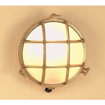 玄関 照明 LED ガーデンライト 外灯 屋外 マリンライト 最新のLEDランプを採用した省エネ、長寿命仕様。 船舶用の照明器具をして使われてきた小型のバルクヘッドライト(船舶の隔壁、艦橋部壁付け、天井付けの照明器具)を日本のエクステリア用にアレンジしたライト。 クリアー塗装仕上げで、室内使用においては、ほとんど仕上げの変化はなくお使い頂けます。 また屋外では、長年のご使用で表面の塗装が剥がれ真鍮独特のしぶい色調に変化していきます。 本体を直接取付面に取付が可能で(直接配線)壁面からの給電が容易で取付簡単です。 くもりガラス(FR)仕様で、しっとりした光が特長です。 ・サイズ(mm):幅192×高さ206×奥行94 ・材質:真鍮 ・仕上げ:真鍮クリアー仕上げ ・ガラス部は、くもりタイプのみです。 ・重量(kg):2.0 ・電球:E17 5W LED電球 1個付 ・生産国:本体部品はイタリア製、組立検査は日本国内