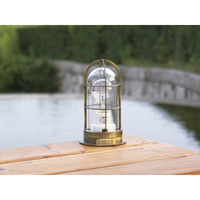 ガーデンライト門柱灯庭園灯にはマリンライトで素敵に演出 玄関先などの軒下の空間向きのブラケット型のマリンライトです。 灯台のライトハウスをモチーフとした傘や、 セードの保護金具がマリン調の雰囲気を醸し出しています。 屋外にも室内にも使用出来ます。 マリンランプは、その独特なデザインで 室内・室外を問わず、 素敵な光の演出が 出来ます。 ・サイズ(mm):直径116×高さ205 ・重 量(kg):1.0 ・材 質:真鍮鋳物 ・仕上げ:アンティーク ・ガラス部:ガラスグローブ透明 ・電球:クリアミニ電球E26 40W