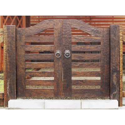ノミの削り出しを施した素朴な風合いが楽しめ、重量感あるウッド門扉 年月を経るごとに木の持つ独自の深い味わいが楽しめます。 《セット内容》 ・門扉0812×2枚 ・門柱L1700×2本 ・ゲートラッチNo.1249×1組 ・ゲートハンドルNo.632×1組 ・ヒンジNo.810 ×4本 ・落とし棒195×1組 ・戸当たり金具×1組 ・アンカー棒×4本
