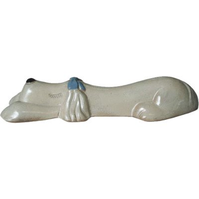 車止めブロック ブロックアニマル カーストッパー オットドッグ メス クリーム色 リボン 青色