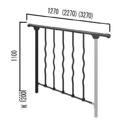 ハンマートーンを施した部材やバリエーション豊かなデザイン挌子等、ロートアイアン独特の重厚感や 繊細さにこだわりました。住まいを華やかに装いながら、優しく道案内してくれます。 ■魅力 その1 支柱ピッチ1mの規格ですが、現場の状況に応じて、1m以下になる場合も簡単な切り詰めで対応できます。 ■魅力 その2 全商品傾斜角40°までの階段や傾斜地に対応できる装飾部品を採用。対応角度内であれば、現場の状況に合わせて施工できます。 ■魅力 その3 主要部材をアルミにすることで、鉄特有の赤錆の発生をなくし、高い耐候性を確保しながら、ロートアイアンの特徴といわれるハンマートーンを随所に再現。重厚感や繊細さにこだわったデザインはロートアイアンそのままです。 ■サイズ(mm) :幅1,270×高さ1100 (1スパン) ■本体 : アルミニウム(一部ステンレス) ※支柱は1本のみ付いています。 ■特徴 : 現場の状況に応じて簡単な切り詰めで対応可能。傾斜角40°までの階段や傾斜地に対応できる。鉄特有の赤錆の発生を無くし、高い耐候性を確保。 ■プラス1本支柱は別売。 ※注意1:ご注文数(=スパンの数)でサイズ幅(=L 単位mm)が変わります。必ず設置する場所の図面をご確認ください。尚、ご注文の単位はスパンですのでご注意下さい。 ※注意2:施工方法に合わせてベースプレートを別途お買い求め下さい。