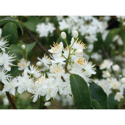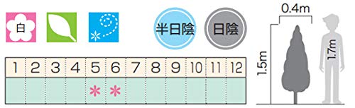 濃緑の葉を背景に、純白の小花が枝先に咲く様が清楚。日陰に強く