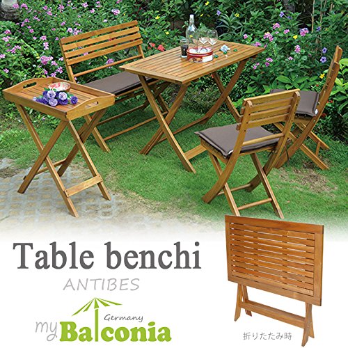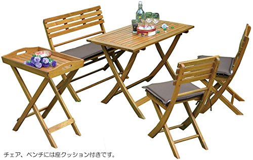 ガーデン テーブル セット 天然木製 折りたたみ テーブル1台&椅子2脚&ベンチ1脚&トレー セット