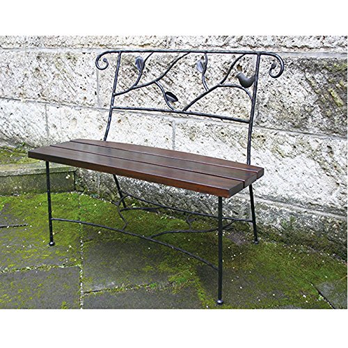 やわらかな曲線のアイアンフレームに落ちついた色合いのチーク。木漏れ日の中にたたずむベンチ。ゆったりとした時間をお過ごしください。