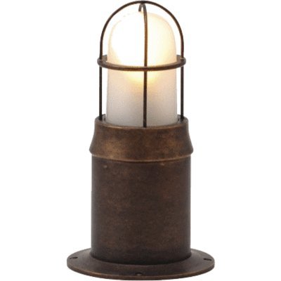 ガーデンライト門柱灯庭園灯にはマリンライトで素敵に演出 ご要望を多く頂きました、上向き取付が可能なマリンライト 門灯(門柱の上への設置)に素敵なマリンライトです。 ・サイズ(mm):幅170×高320×奥行170 ・材 質:真鍮 ・仕上げ:真鍮古色仕上げ ・ガラス部:くもりタイプ ・E26 5W LEDランプ ・台湾製