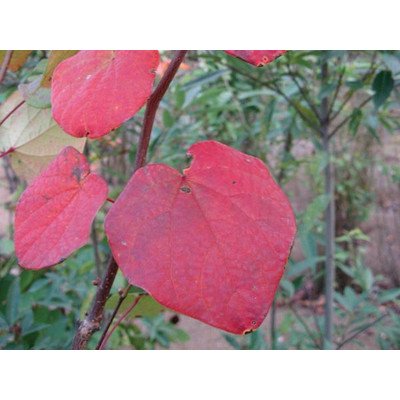 都市部でも、見ごたえのある鮮やかな紅葉が楽しめます。ハート形でピンクの新葉も愛らしい。