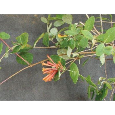 緑のカーテン ツキヌキニンドウ 突抜忍冬(大株) オレンジ色花 落葉 つる植物