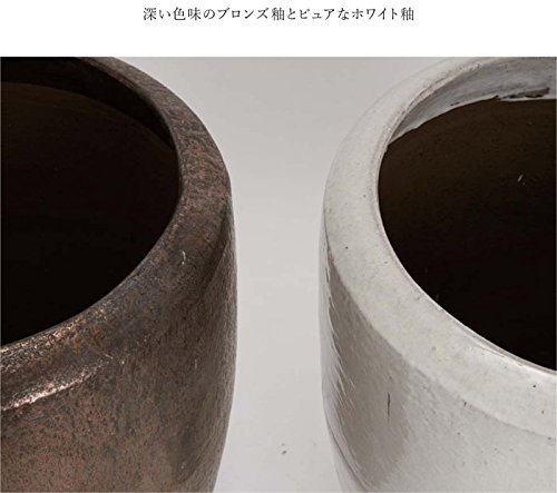 プランター 植木鉢 深い色味のブロンズ釉とピュアなホワイト釉、寒冷地対応で汚れにくい大型ポット