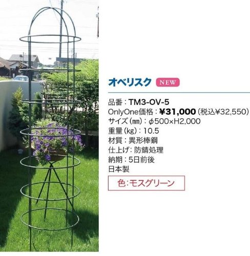 クレマチスやつるバラ等のツル性植物を這わせて立体的に演出できるオベリスクです。 植物の重みに耐えるワイルドな造りです。