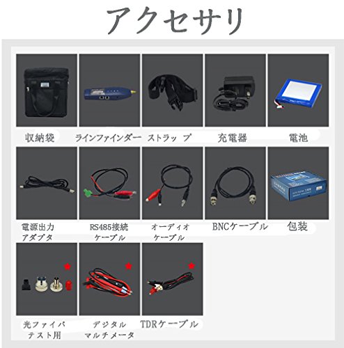 - 各種の機能:たくさんの付属品があるので、付属機能もたくさんがあります。POE給電テスト、PING、IPアドレスサーチなどのイーサネットテスト、TFRケーブルブレークポイントと短絡測定、ネットワークケーブルテスト、ラインファインダーのケーブルテスト、赤外光源、光パワーメータなどの光ファイバーテスト機能があります。マルチメータもあるので、電圧・電流もテストもできます。本体にはLED灯夜間照明、DC12V電源出力などの機能が内蔵されていて、取付と保存作業者の作業効率を高めます