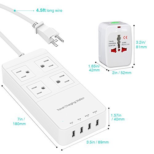 Travel Power Strip, ORIA Charging Station & Travel Adapter with USB, Include a 3 in 1 Interchangeable Worldwide UK/AU/EU plugs + 4 AC Outlets + 4 USB Ports (100V~250V) White [並行輸入品]