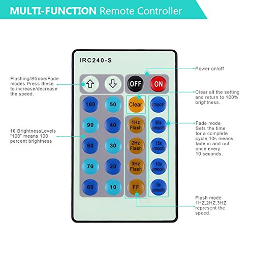 - Changeable Brightness and Modes: There are 10 brightness levels and 3 different modes for adjustable settings (Flash / Strobe / Fade). You can create different atmosphere by changing the brightness level and the mode.
