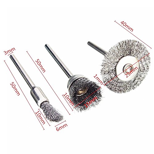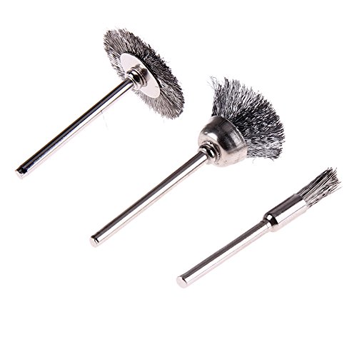 Wolfride 3mm軸 45個入り3種類 ワイヤーブラシ ワイヤーホイールブラシ 研磨ブラシ 研削ブラシ 毛研磨ブラシ ボウルカップ形状 筆型 ドレメル 回転ツール アクセサリー