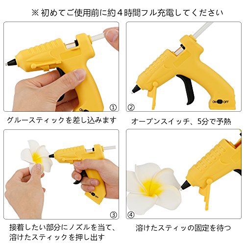 - グルースティック付け:※本製品は直径7mm/約10 cmの長さのグルースティックに対応できます。環境に優しいグルースティックが30本付属しており、強力な粘着力を持ちつつ、使う方の健康やアイテムを保護できるように、剥がしやすい性質を持っています
