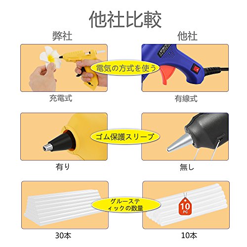 改良版 グルーガン Oture USB充電式 コードレス 接着剤道具 高温 強力粘着 DIY 手芸用スティック30本付き 木材/紙/皮革/プラスチック用