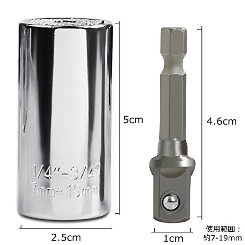 Oture 万能ソケット ユニバーサル ソケットレンチ フリー サイズ(7-19mm,1/4~3/4インチ)