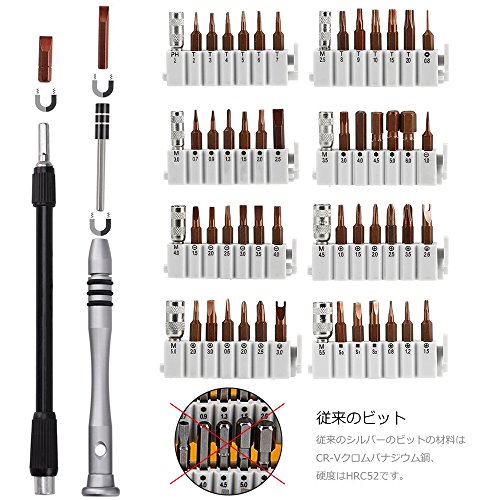 - 【作業性抜群】豊富な56種類のビットが付き、多種類な時計、携帯、パソコンなどの様々な精密機器のネジに対応できます