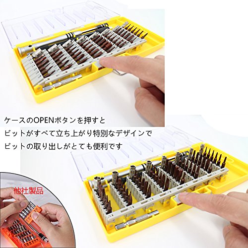 - 【専用ケース付き】ビットがバラバラにならない専門ケースが付き、ケースのオープンボタンを押すと、傾斜的なビットは縦になり、取り出しやすいです