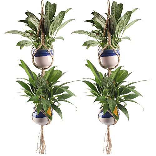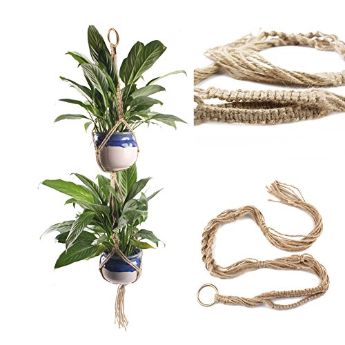 OurWarm プラントハンガー マクラメプラント ハンキング エアプランツ・ハンモック ヘンプロープ プラントホルダー 植物ハンギング 吊るす 飾り ジュート製 麻縄 鉢 プラント 紐 丈夫 花卉園芸&インテリア飾り用 小 2段