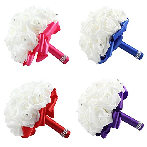 OurWarm® クリスタルローズパール ウェディングブーケ 人工シルク グルースティック1本付 5pcs 703327929268