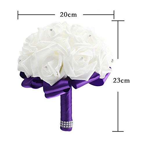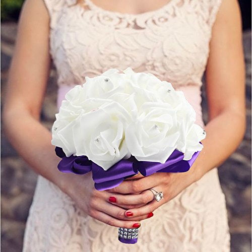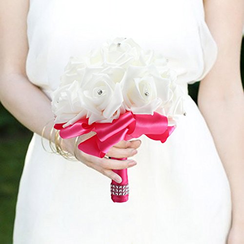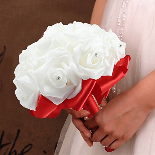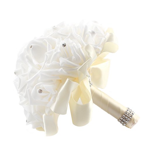 OurWarm® クリスタルローズパール ウェディングブーケ 人工シルク グルースティック1本付 5pcs 703327927127