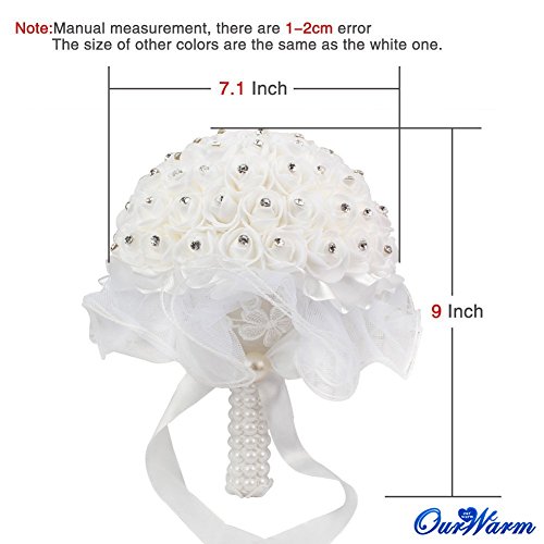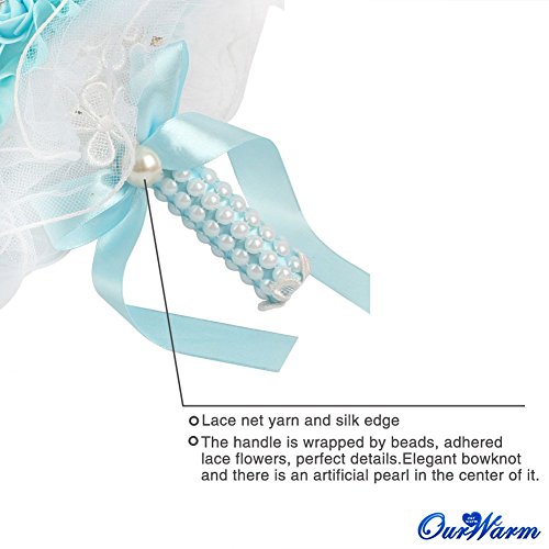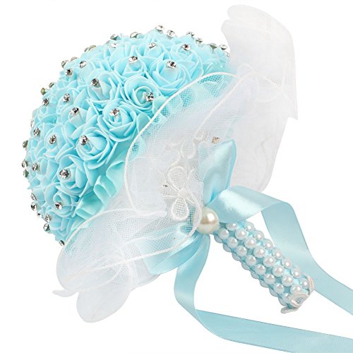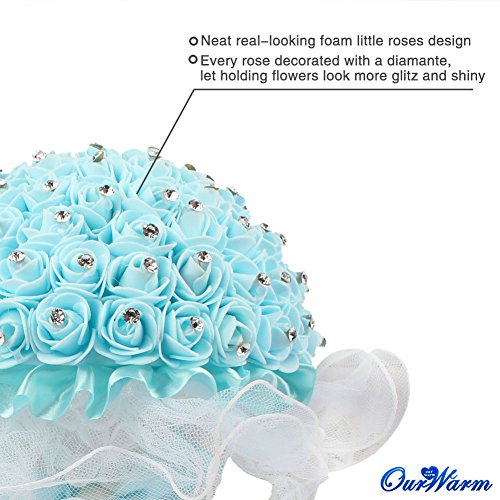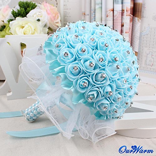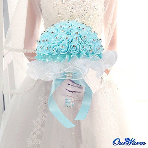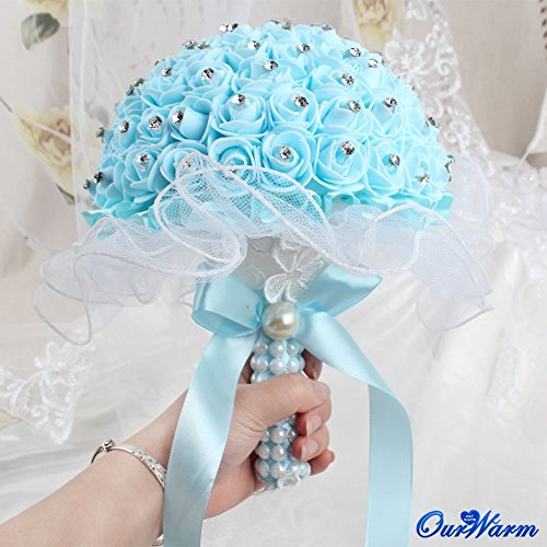 OurWarm Foamクリスタルバラパールブライダルブライズメイド結婚式レースブーケ人工シルク花 1pcs ブルー 1SPH-LSQZ-PWK-1