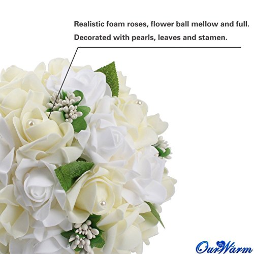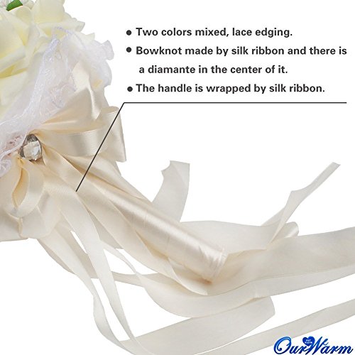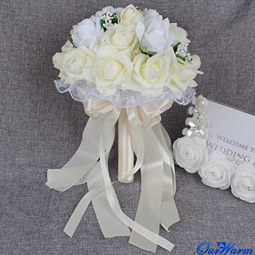 Ourwarm® ウェディングブーケ ブライダルフラワー 約23x26cm 結婚式 花嫁 披露宴 バラ 花束 (Ivory)